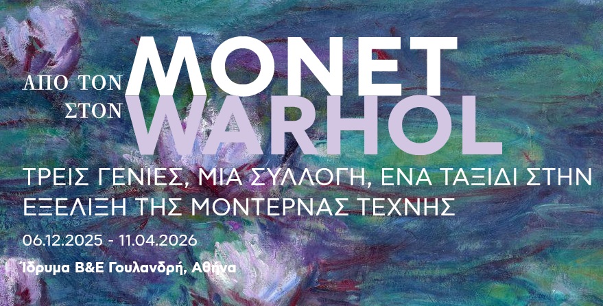 Το Ίδρυμα Βασίλη & Ελίζας Γουλανδρή παρουσιάζει στο Μουσείο του στην Αθήνα, από τις 6 Δεκεμβρίου 2025 έως τις 11 Απριλίου 2026, την περιοδική έκθεση «Από τον Monet στον Warhol: Τρεις γενιές, μια συλλογή, ένα ταξίδι στην εξέλιξη της μοντέρνας τέχνης».
